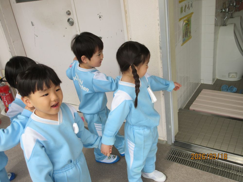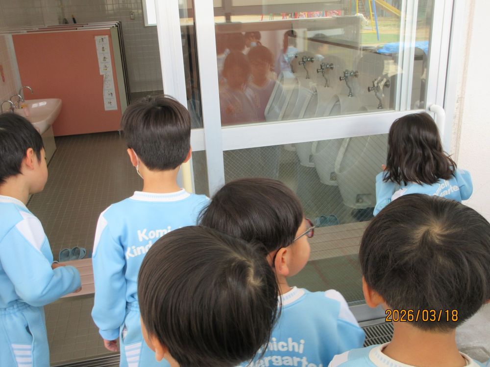 年少さんのトイレはお部屋からつながっていたけれど・・・こんなところにあった!!