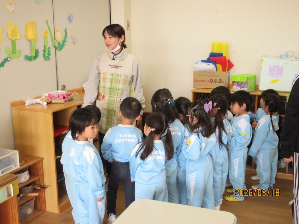 今日は4月からお世話になるかも知れない保育室を探検しました。ドキドキ・ワクワク
