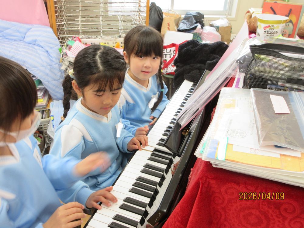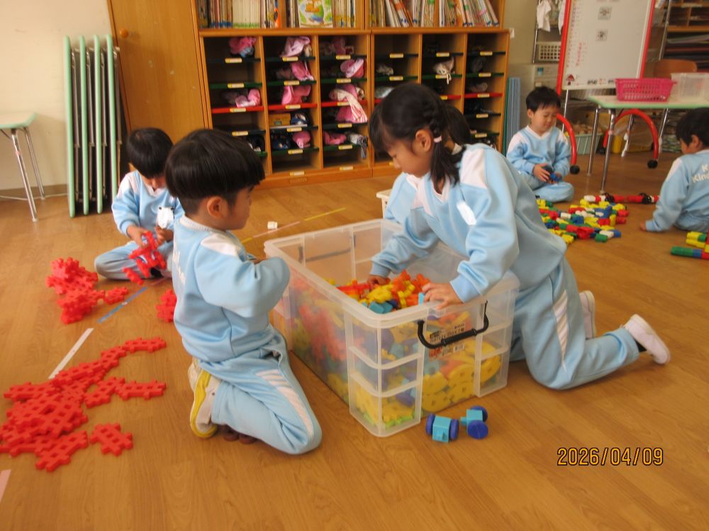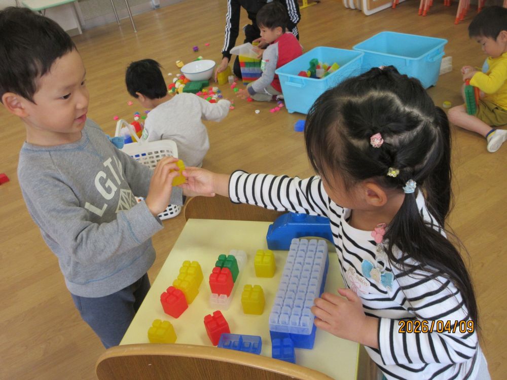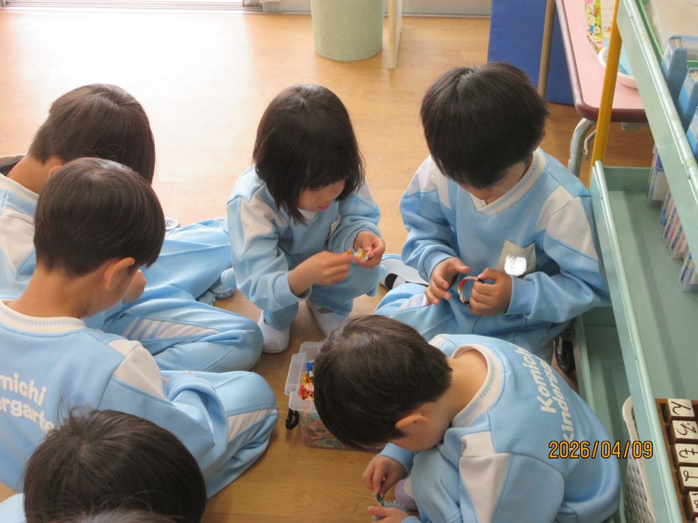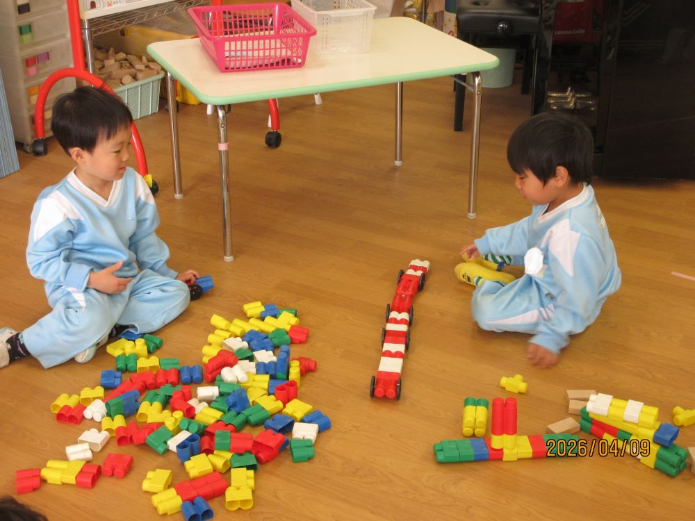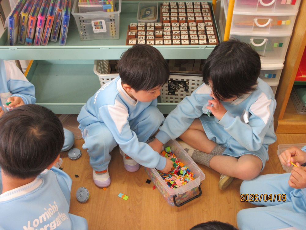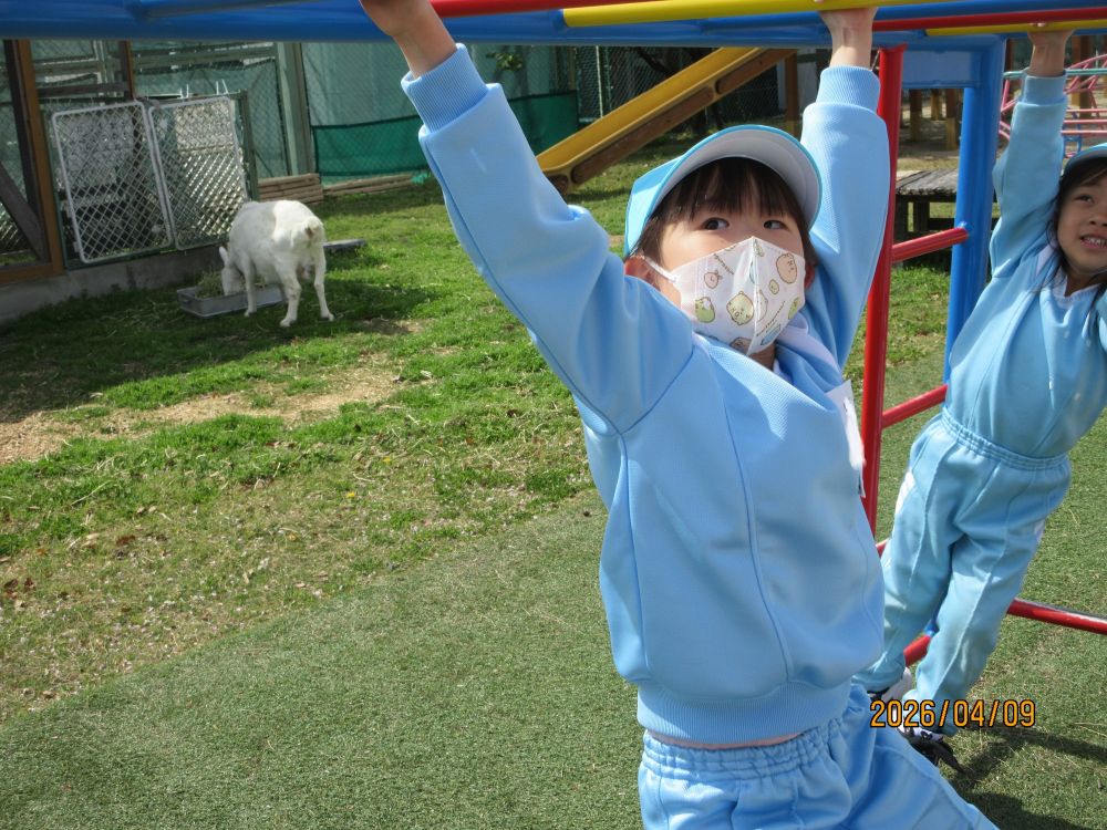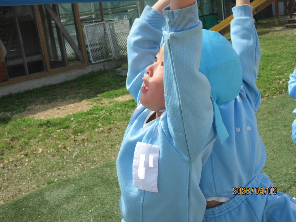 新しいクラスになって2日目です。朝からいいお天気だったので、園庭には色とりどりのカラー帽子が賑やかに走り回っていました。新しい担任の先生に、昨日は少し緊張していた様子の子どももいましたが、今日は一転!!担任を追いかけて大はしゃぎで遊んでいました。とっても人懐こいこみちっこ達です。これからもいっぱい楽しいことしようね。