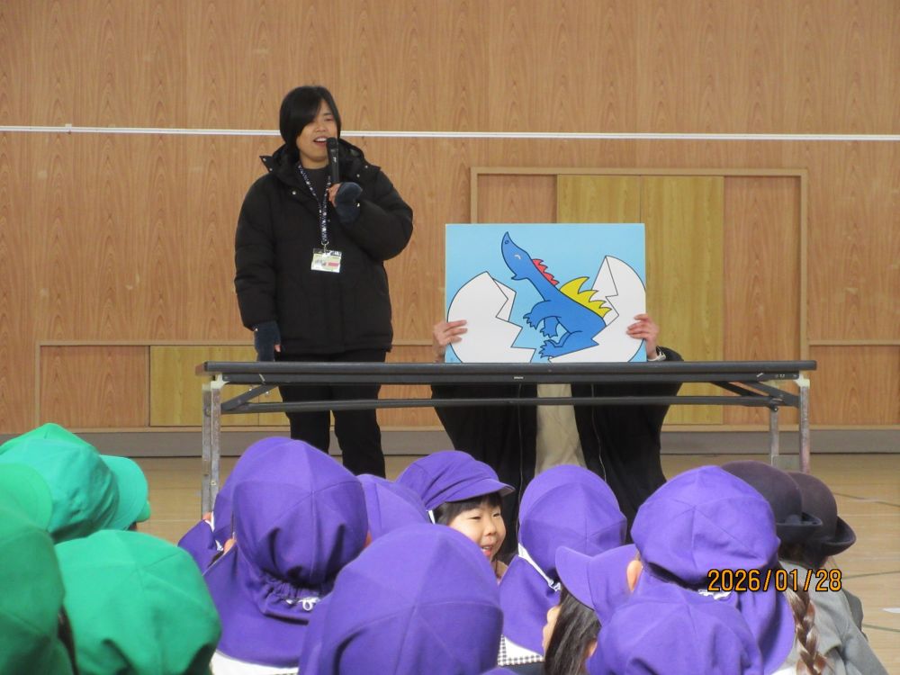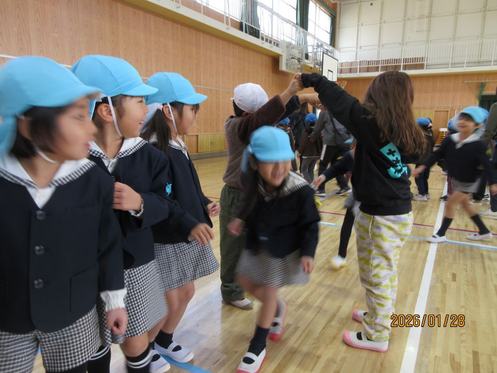 今日は大阪市立東井高野小学校で「わくわくスタート交流会」がありました。年長の子ども達が小学校の一年生と一緒に絵本を見たり、ゲームをしたりして遊びました。この時期になると、一年生に進学することにワクワク期待いっぱいの子どももいれば、ちょっぴり不安になっている子どももいます。一年生と一緒に遊ぶことで、「楽しいところだな。」「早く一年生になりたいな。」と思ってくれたことと思います。また、東井高野小学校には、こみち幼稚園の卒園児もたくさんお世話になっています。懐かしい顔がいっぱい!!引率した先生たちも、すっかり逞しくなった子ども達に「〇〇ちゃ~ん」と大喜びでした。
