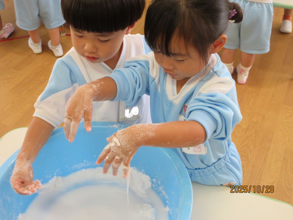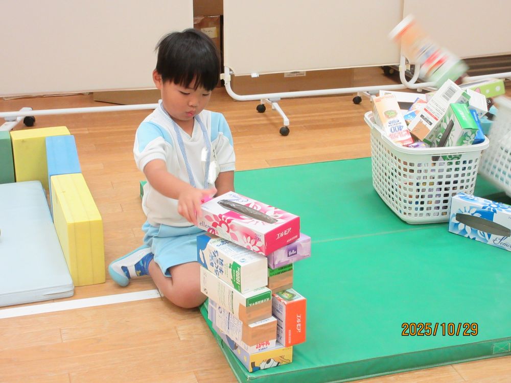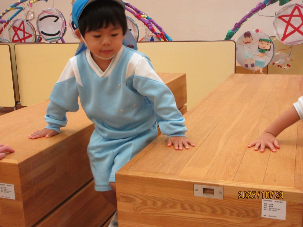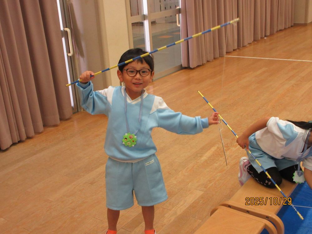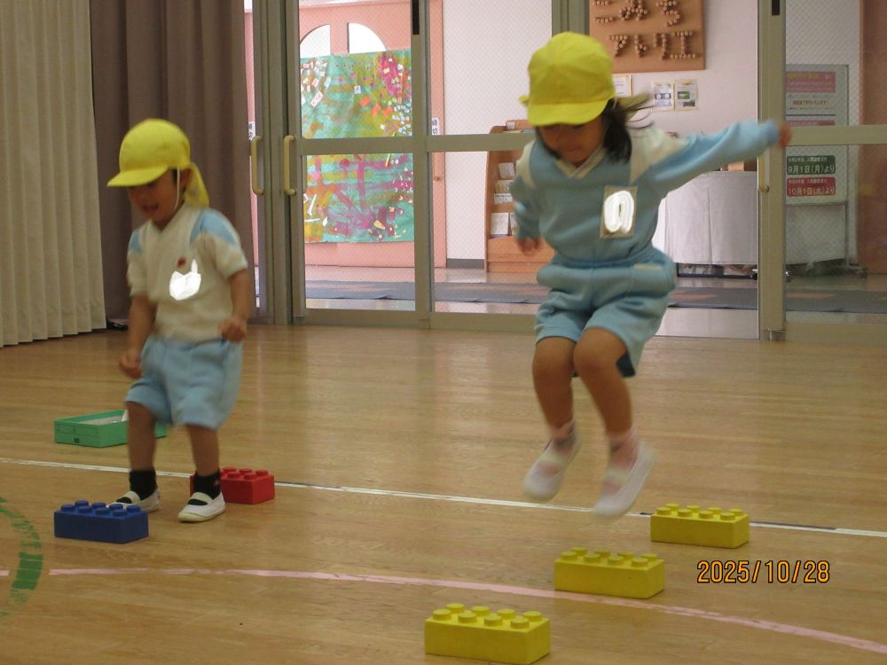 運動会も無事に終わり、今週は「体力測定」に取り組んでいます。年少~年長まで、「25m走」「立ち幅跳び」「ボール投げ」「両足連続跳び」「体支持」の5種目を行い、子ども達の運動能力の発達の様子について個人及び園全体で見ていきます。子ども達の体力が落ちてきていると言われて随分経ちますが、こみち幼稚園では、サーキット遊びを中心に、広い園庭や遊戯室でおもいきり身体を動かして遊ぶことを楽しんでいます。