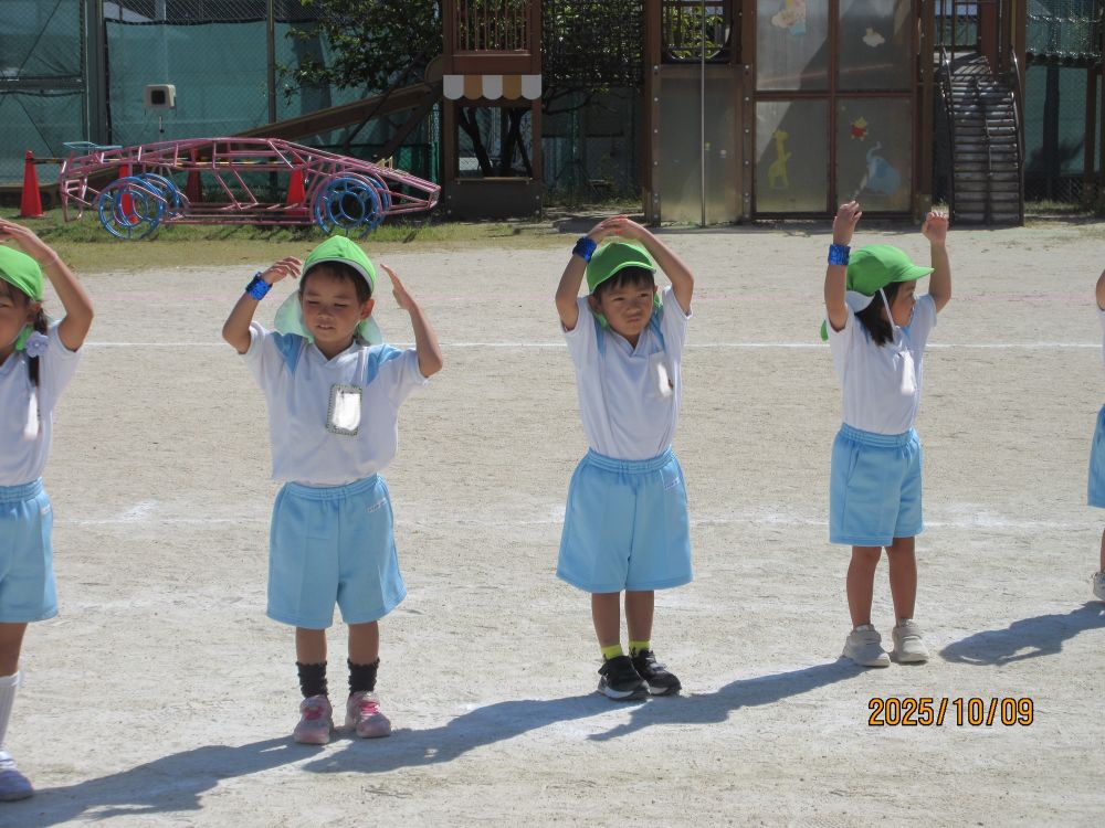 今日は運動会予行練習を行いました。年長さんの鼓隊演奏から始まり、開会式~体操~年少さんのサーキットとダンス~年中さんのダンス~年長さんのリレー~表彰式~閉会式の順に行いました。見ている子ども達は、一生懸命手拍子や拍手、声援を送っていました。当日が楽しみですね。
