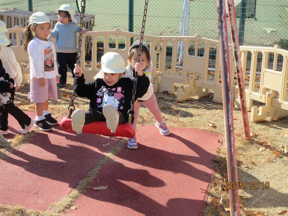 今日で第2保育期が終わりました。遊戯室で終業式を行い、園長先生から冬休みの過ごし方について話を聞き、各保育室でも再度話し合いました。「くるまにきをつける~」「おてつだいする~」と口々に教えてくれました。明日から19日間みんなに会えないのは寂しいけれど、1月8日元気な子ども達に会えるのを楽しみにしています。みんな~元気でね~