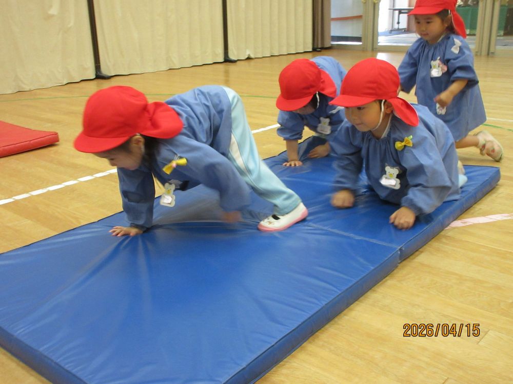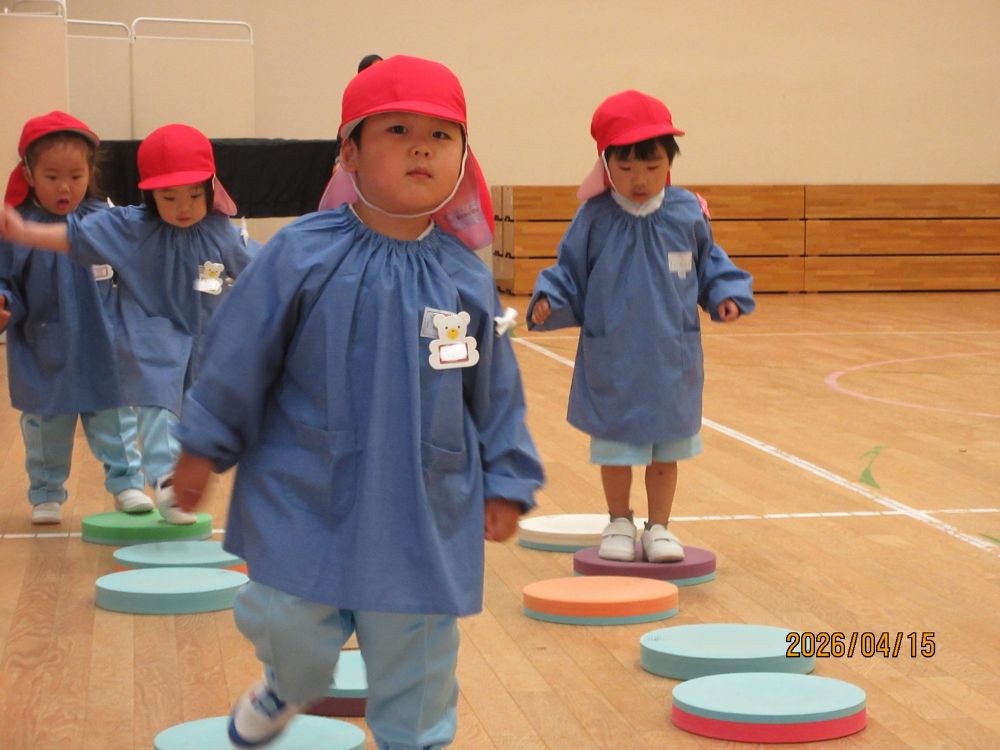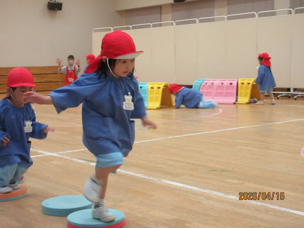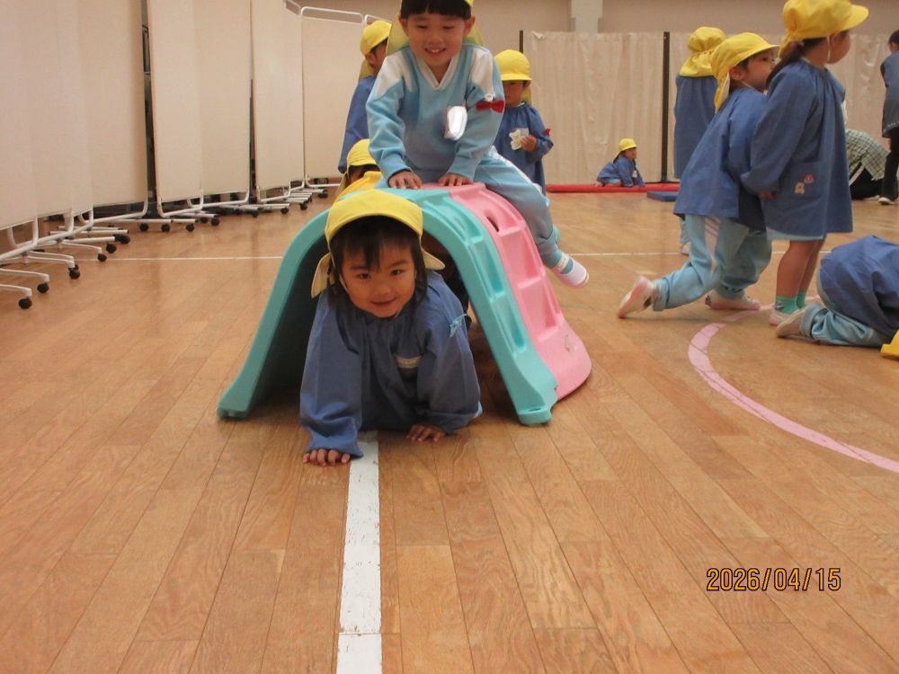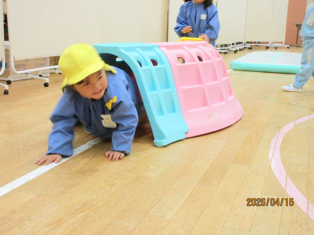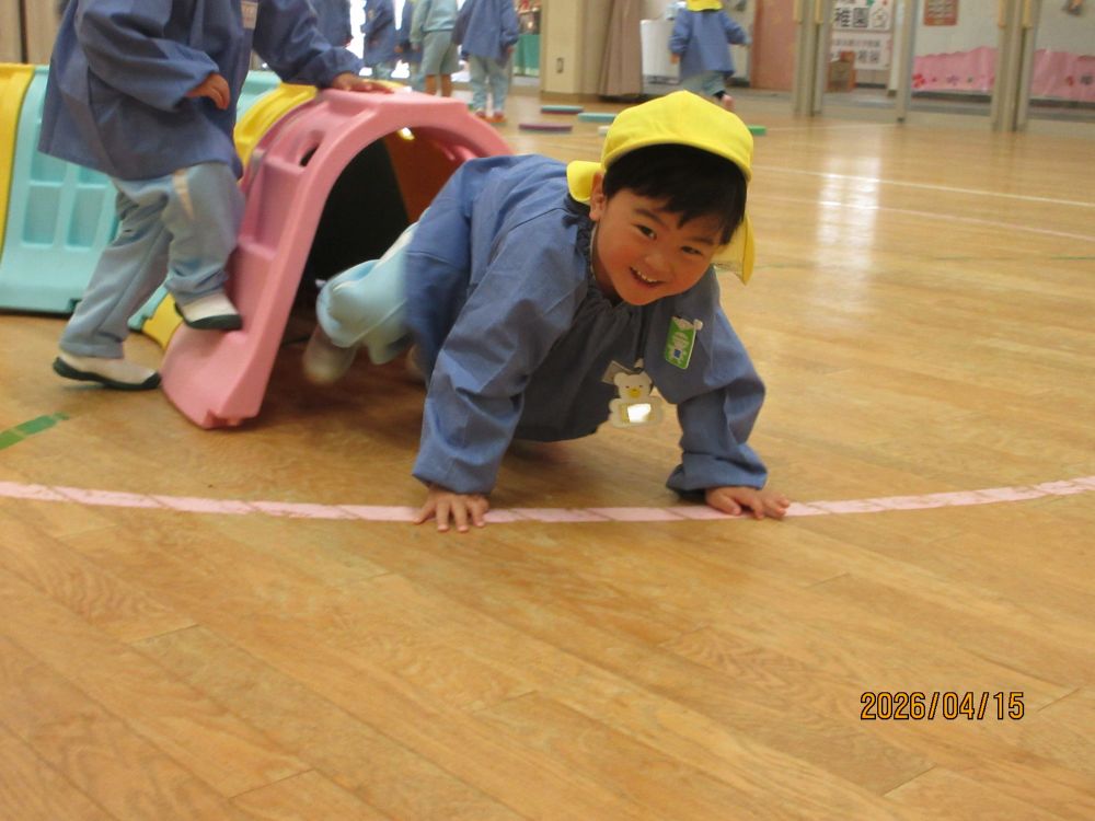 遊戯室でサーキット遊びをしました。くまさんになって歩いたり、トンネルをくぐったり・・・「たのしかった~。」と子ども達も大満足!サーキット遊びを通して色々な運動に取り組んでいきます。今度はどんなことをしようかな?