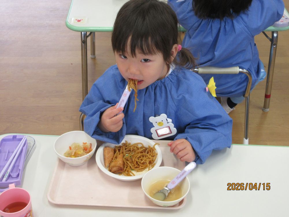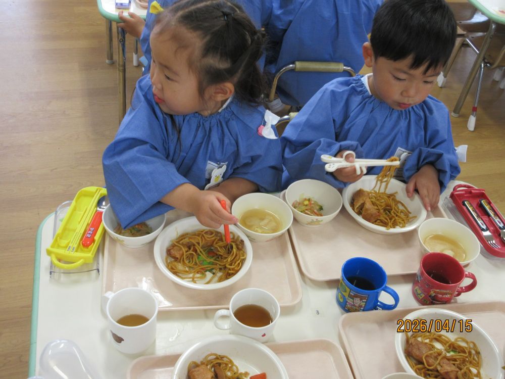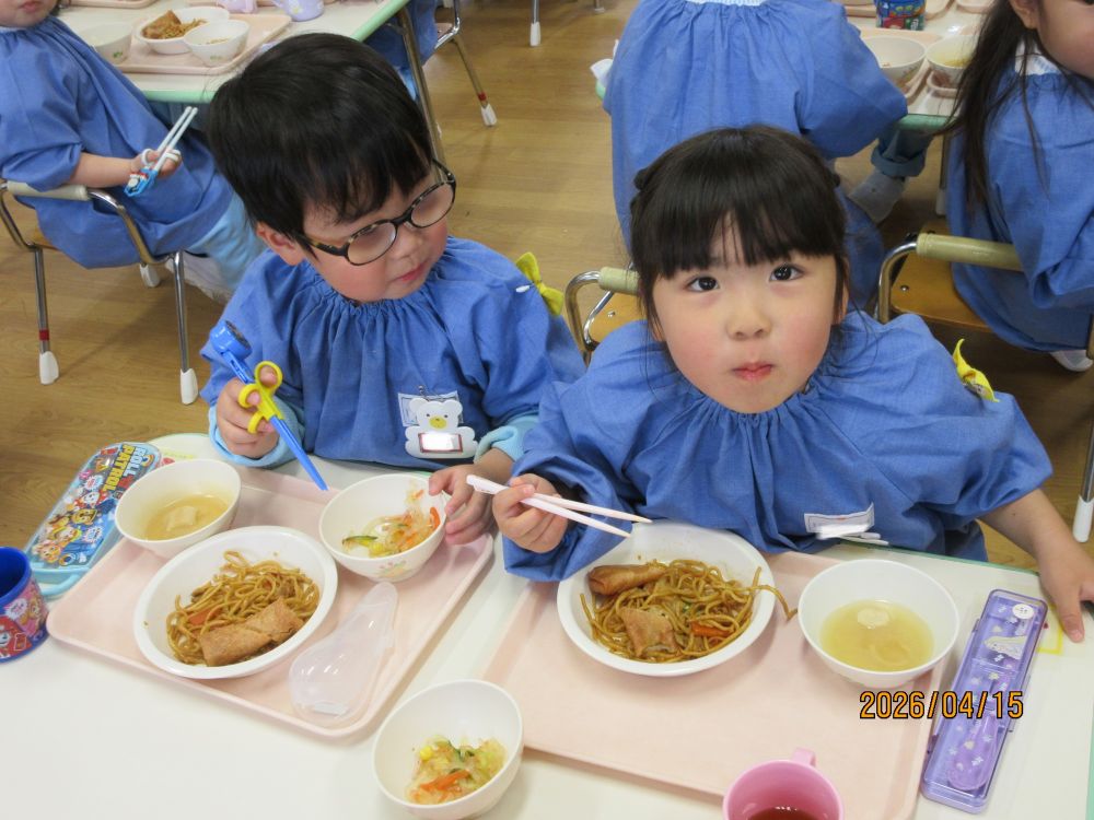 いっぱい遊んだら「せんせい おなかへった~!!」と口々に言いだしたので、「今日は焼きそば~」と言うと「はやくたべたい!!!」