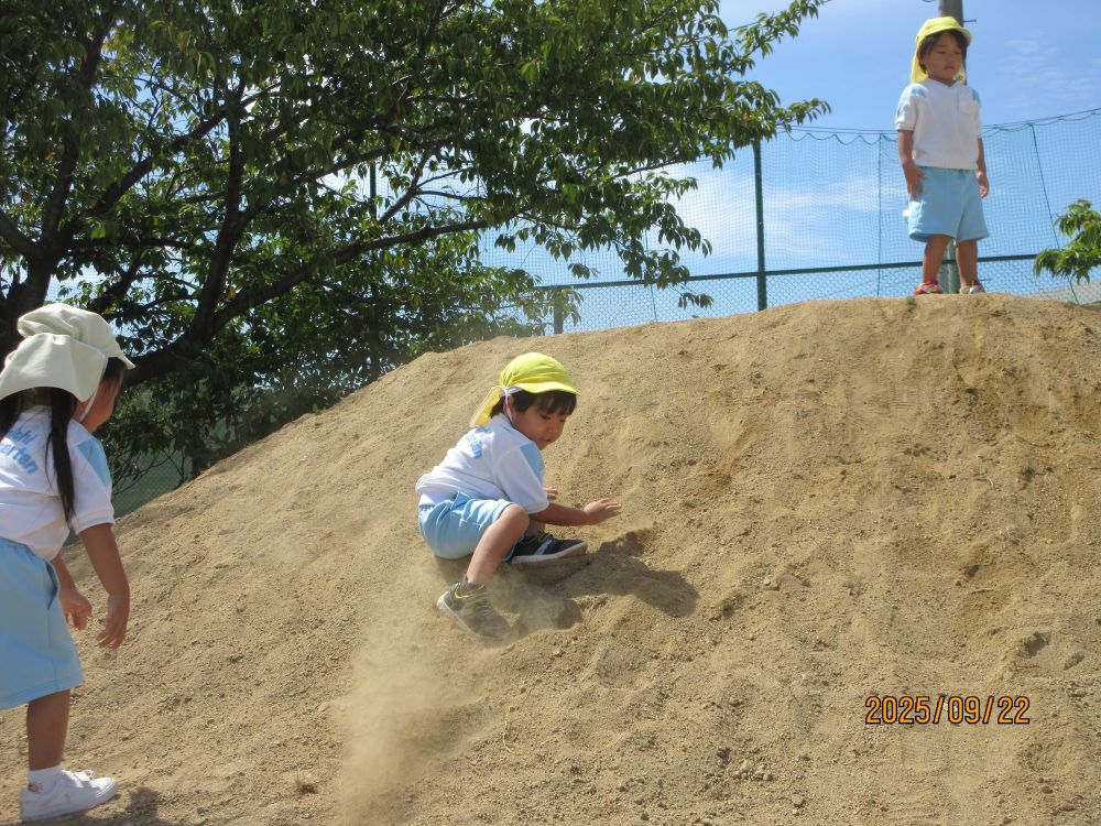この土日のお休みの間に土山がきれいになりましたよ。少し高くなり、登るのもひと苦労!!