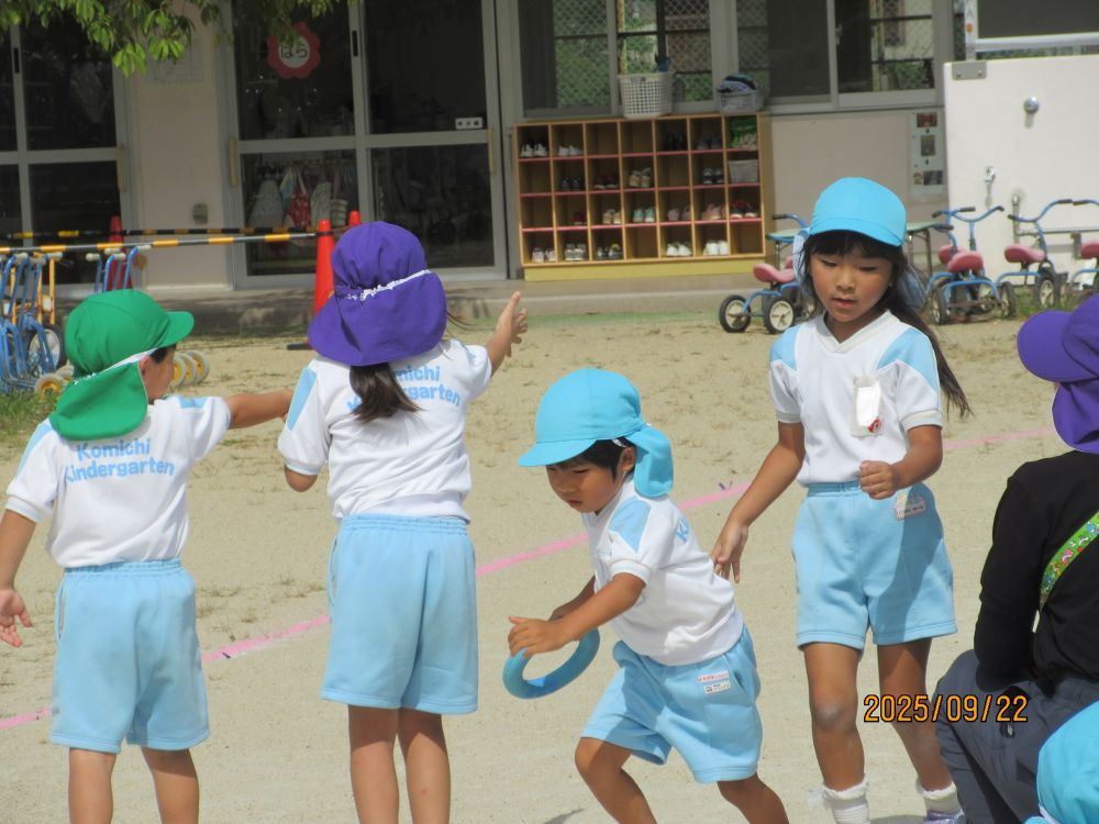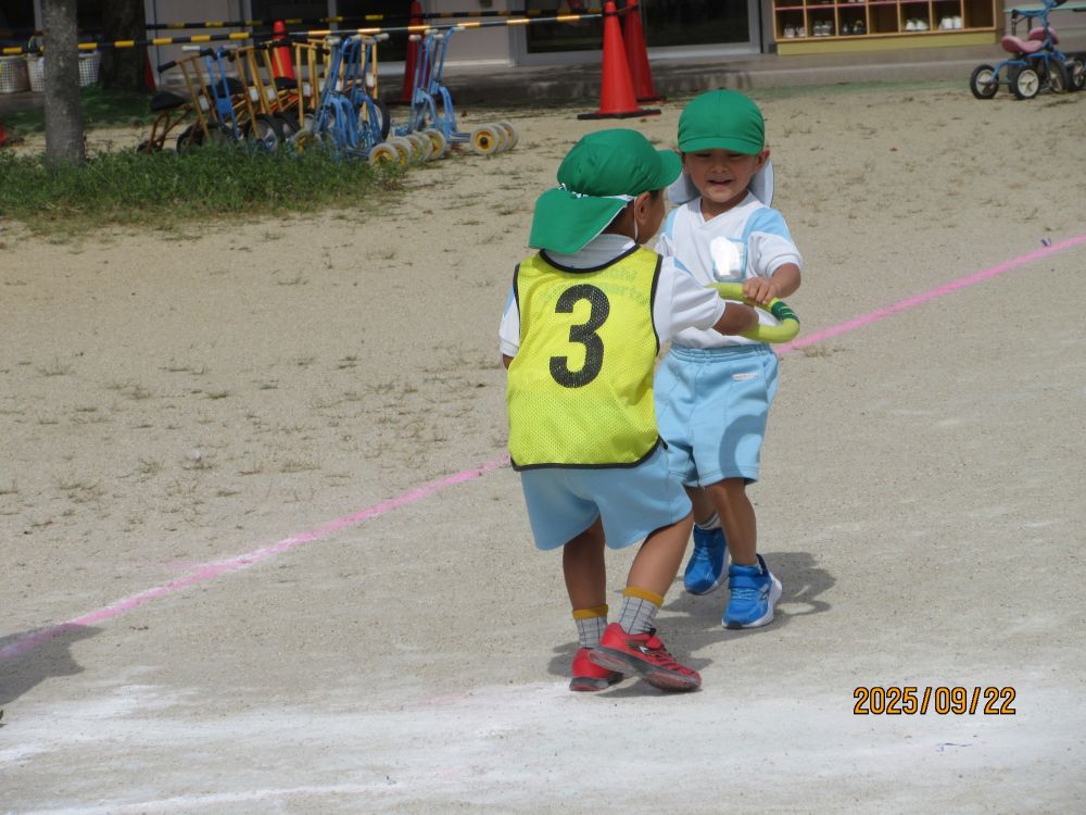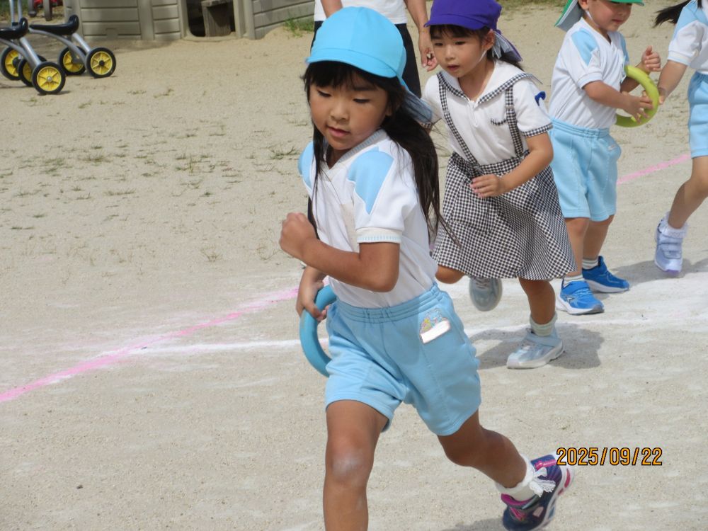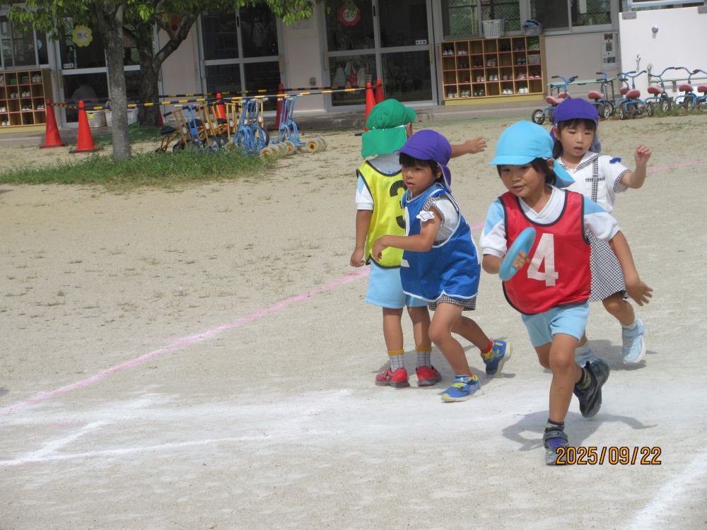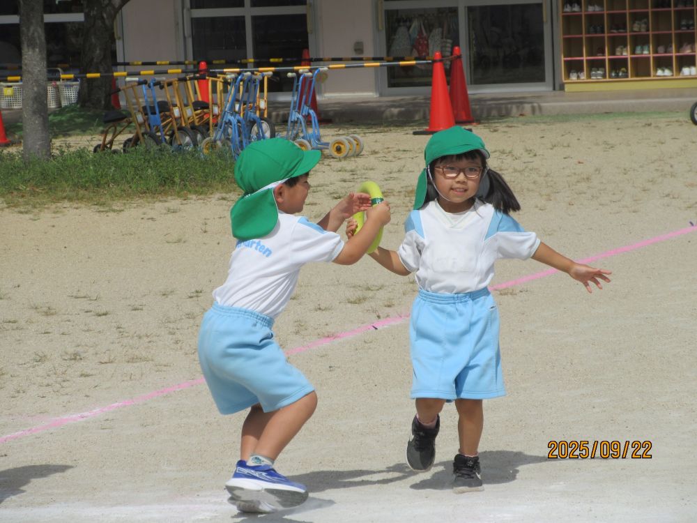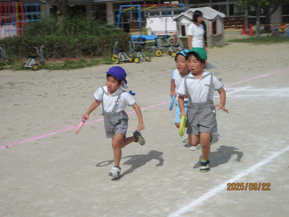 午後から年長さんがクラス対抗リレーに取り組んでいましたよ。