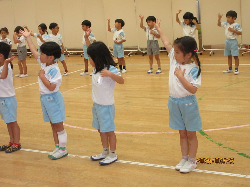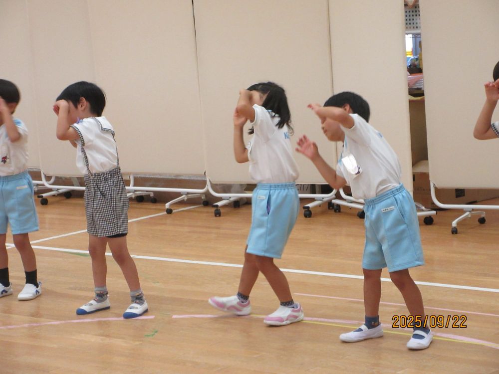 年中さんは、遊戯室でダンスの練習をしていましたよ。
