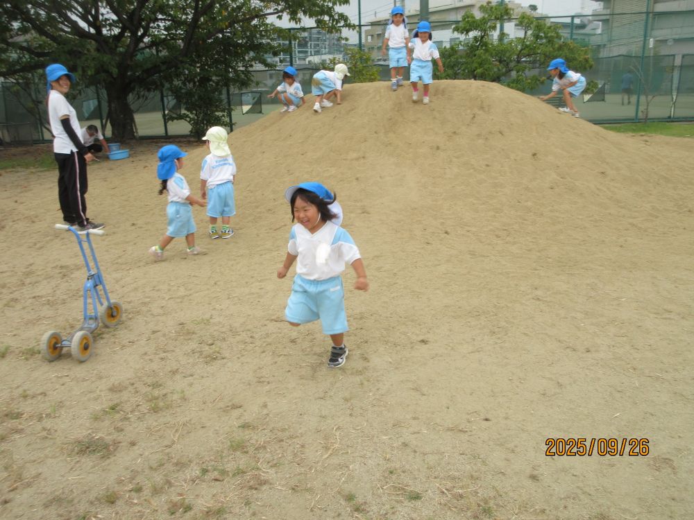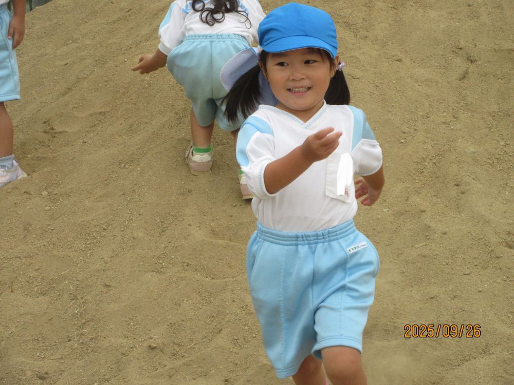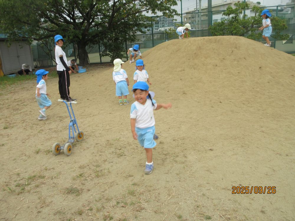 年長さんの鼓隊演奏は、憧れの的です。「せんせい みにいこう!」の言葉にクラスみんなで見に行った時にはもう終わり・・・「アンコール!!」と子ども達と大きな声で言うと年長の子ども達は「いいよ~。」と喜んで演奏してくれました。演奏後には「ありがとう~。」と言うと、「どういたしまして!!」と応えてくれる年長さんでした。プラムに参加していた男児もわざわざ保育室までやって来て、「せんせい たいこみにきてくれてありがとう。」と言ってくれました。「こちらこそ、ありがとうね。」と言うと、「どういたしまして~。」【ありがとう】って素敵な言葉ですね。普段から、「ありがとう」の言葉が言える子どもになって欲しいと思っています。